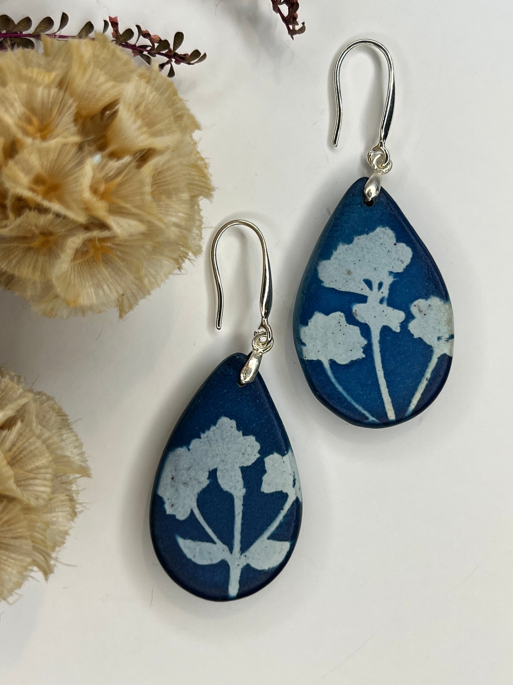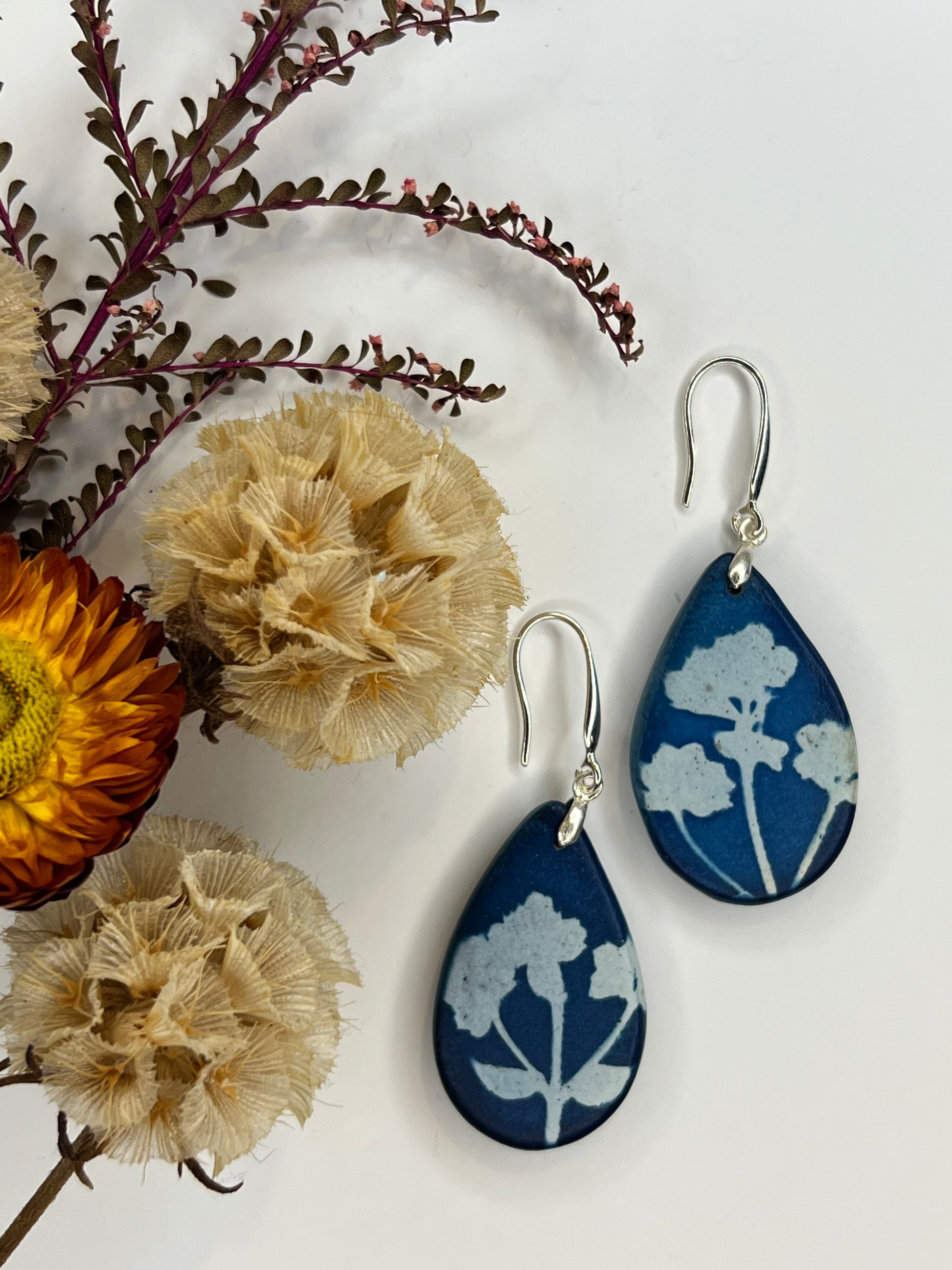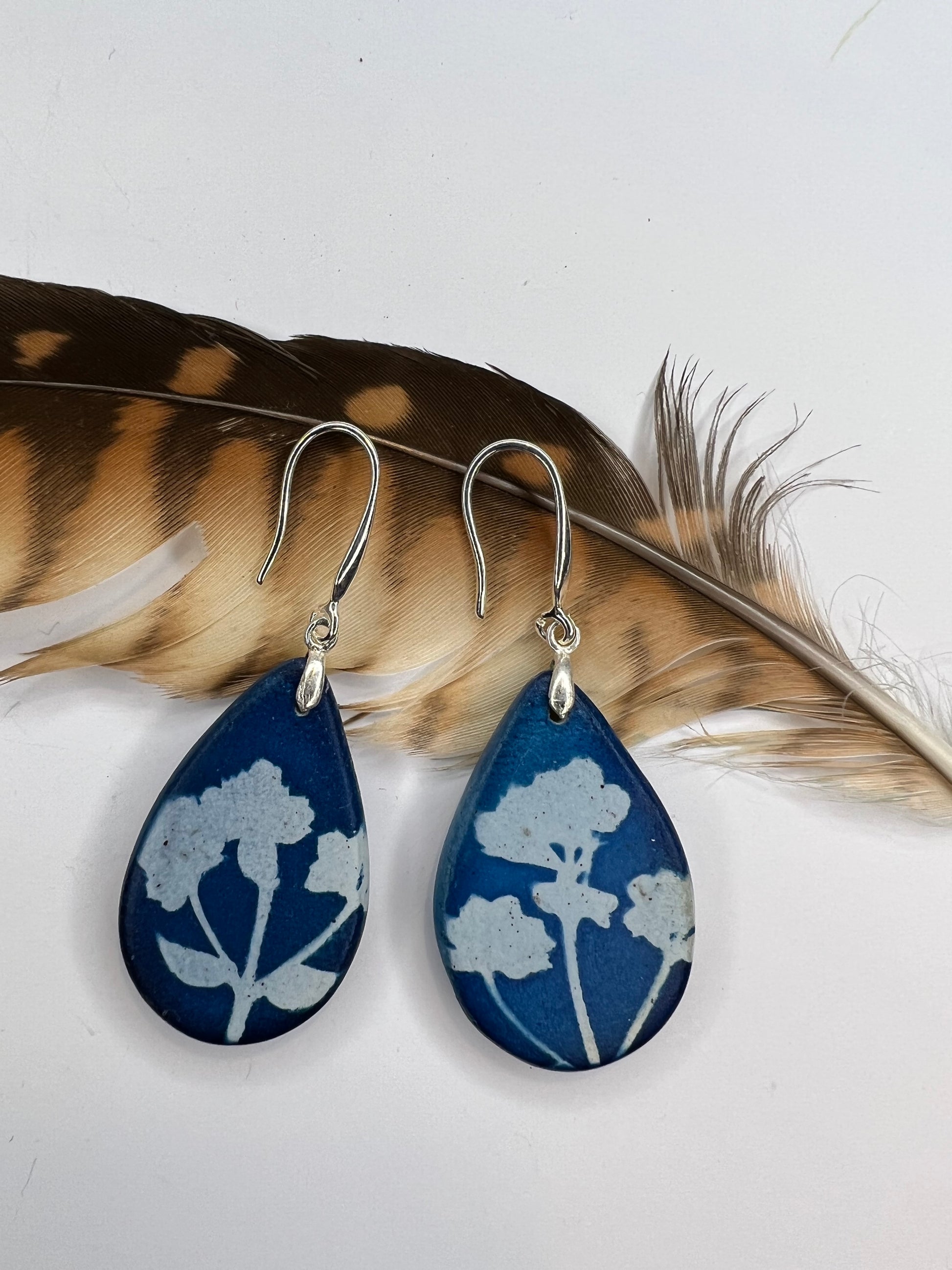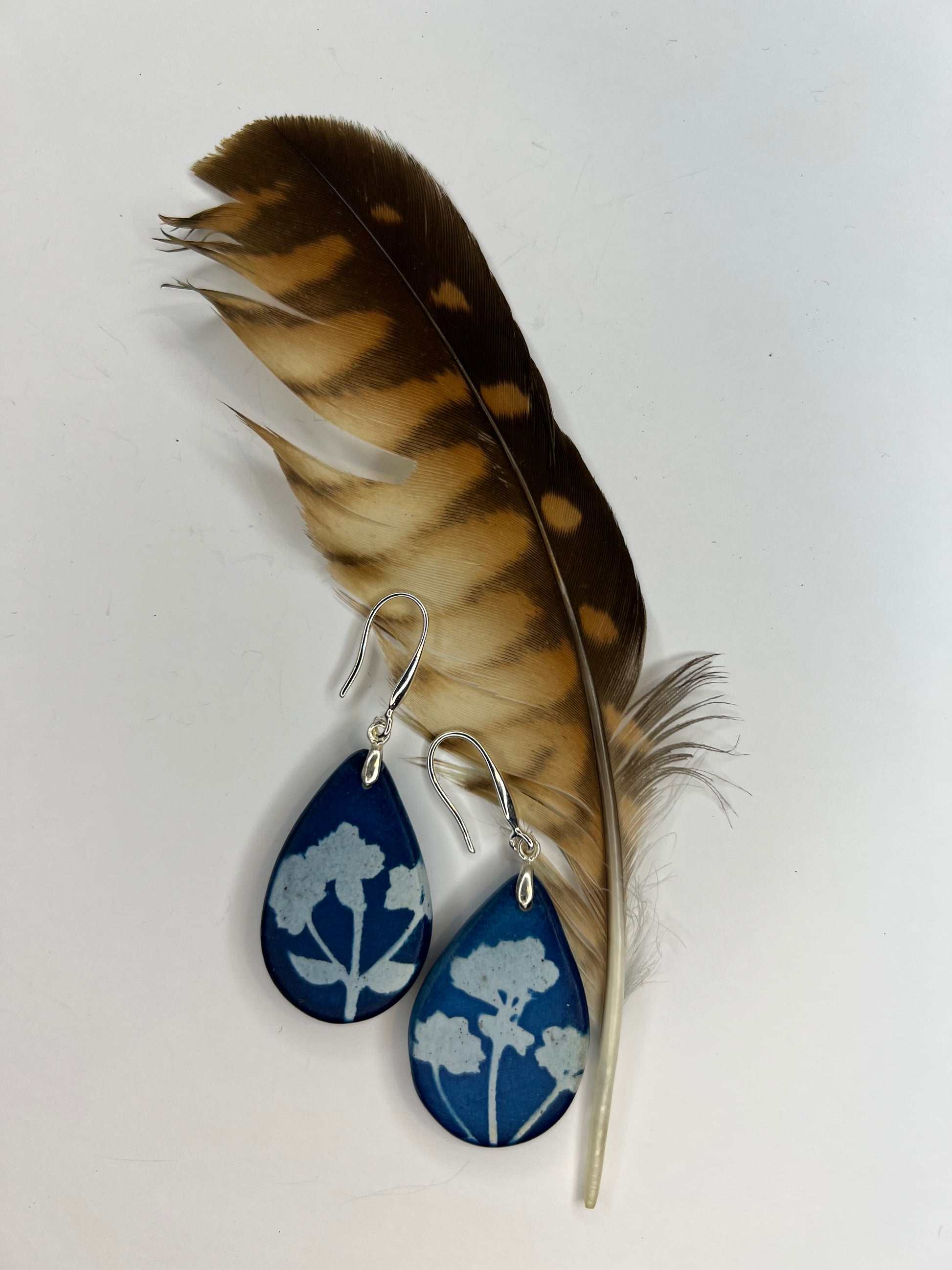 A 925 Sterling silver wire hook is attached to the final products to compliment the beautiful blue tones in each unique pair.