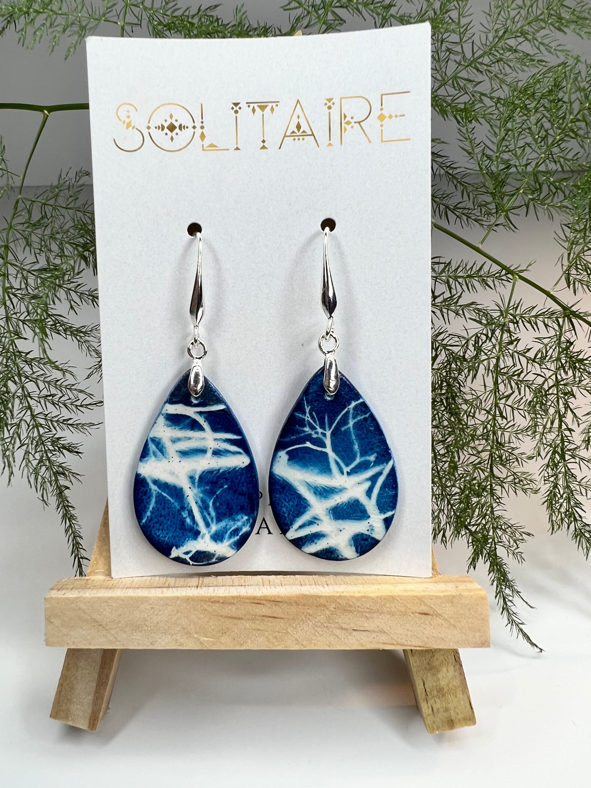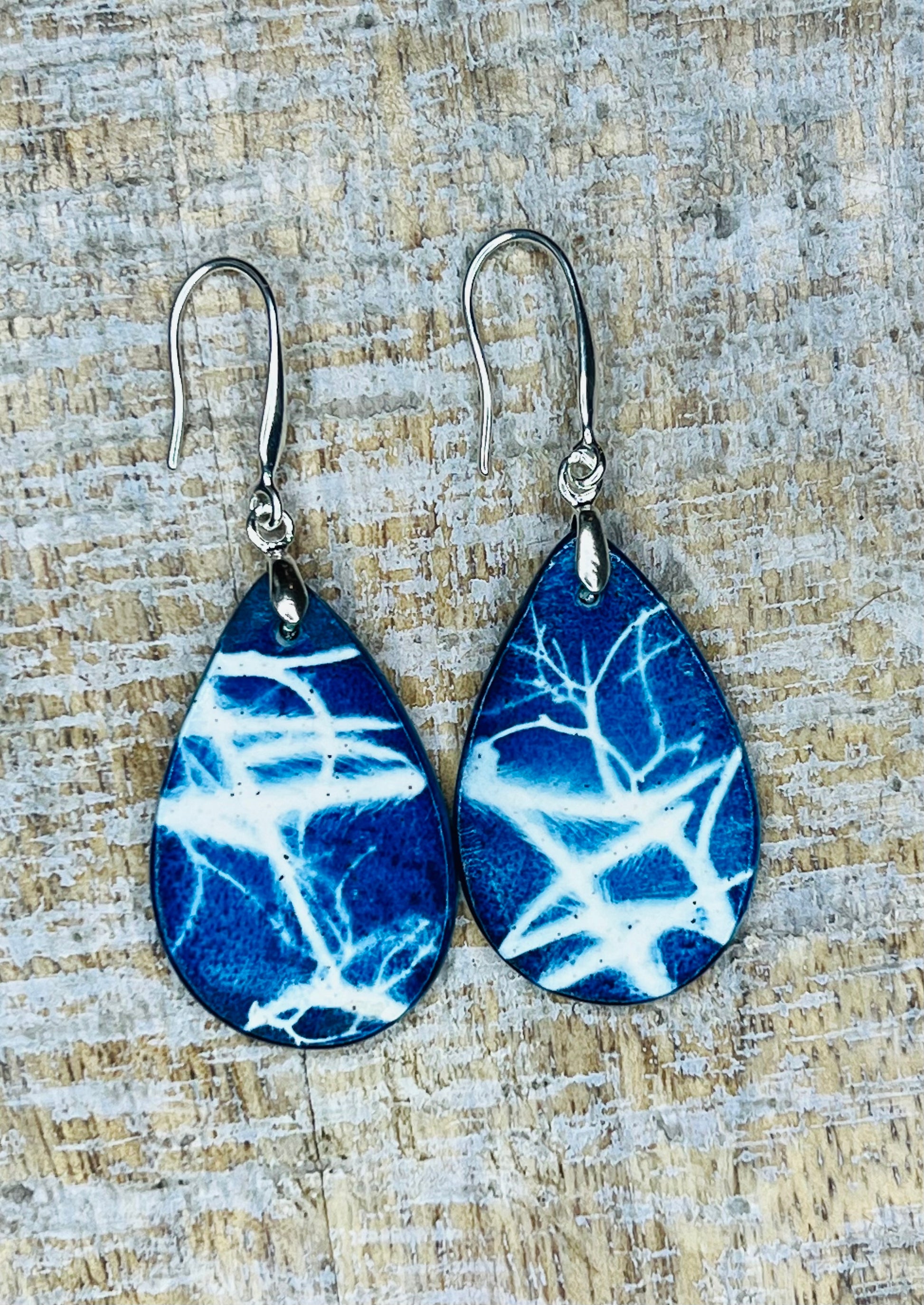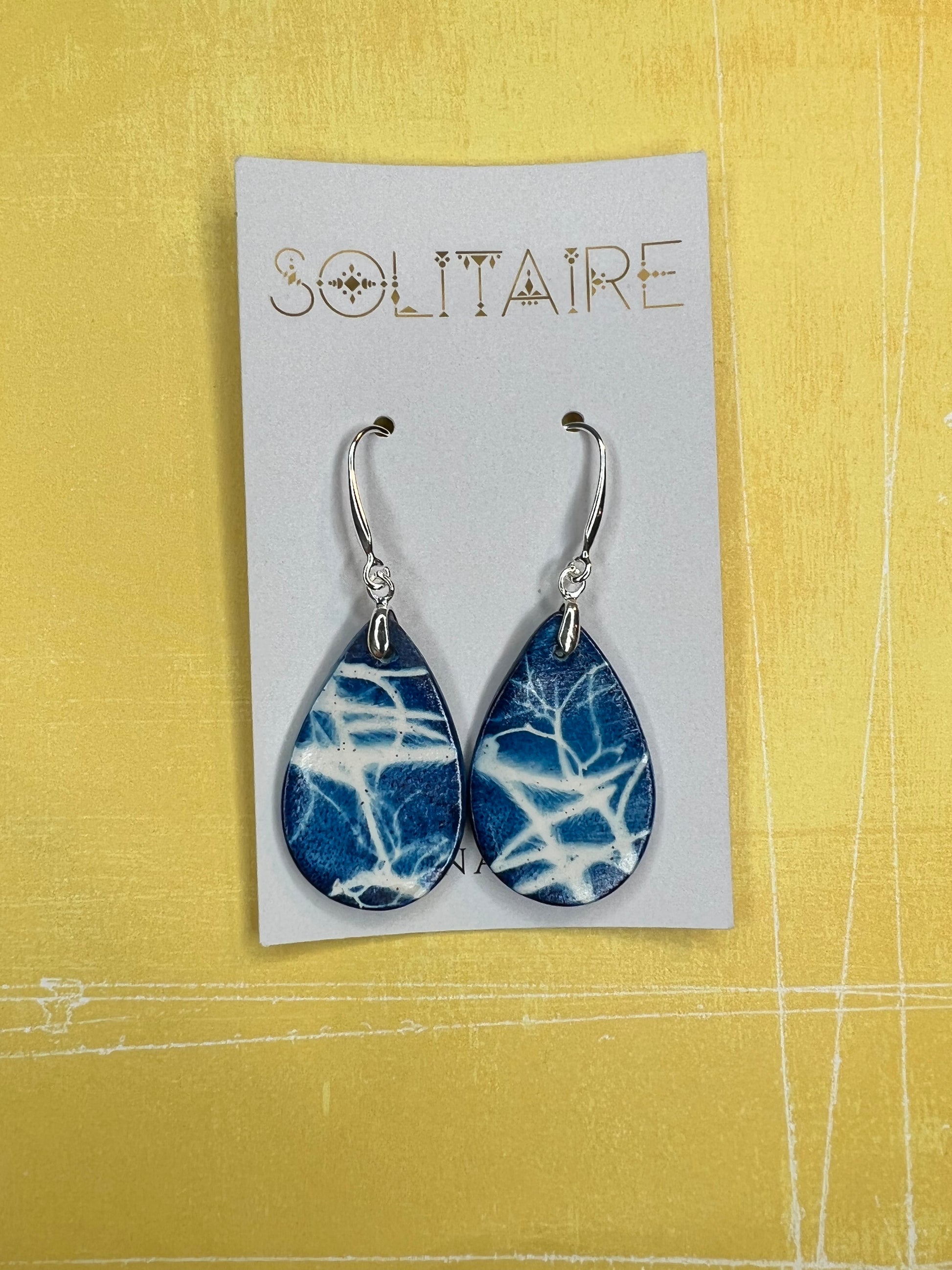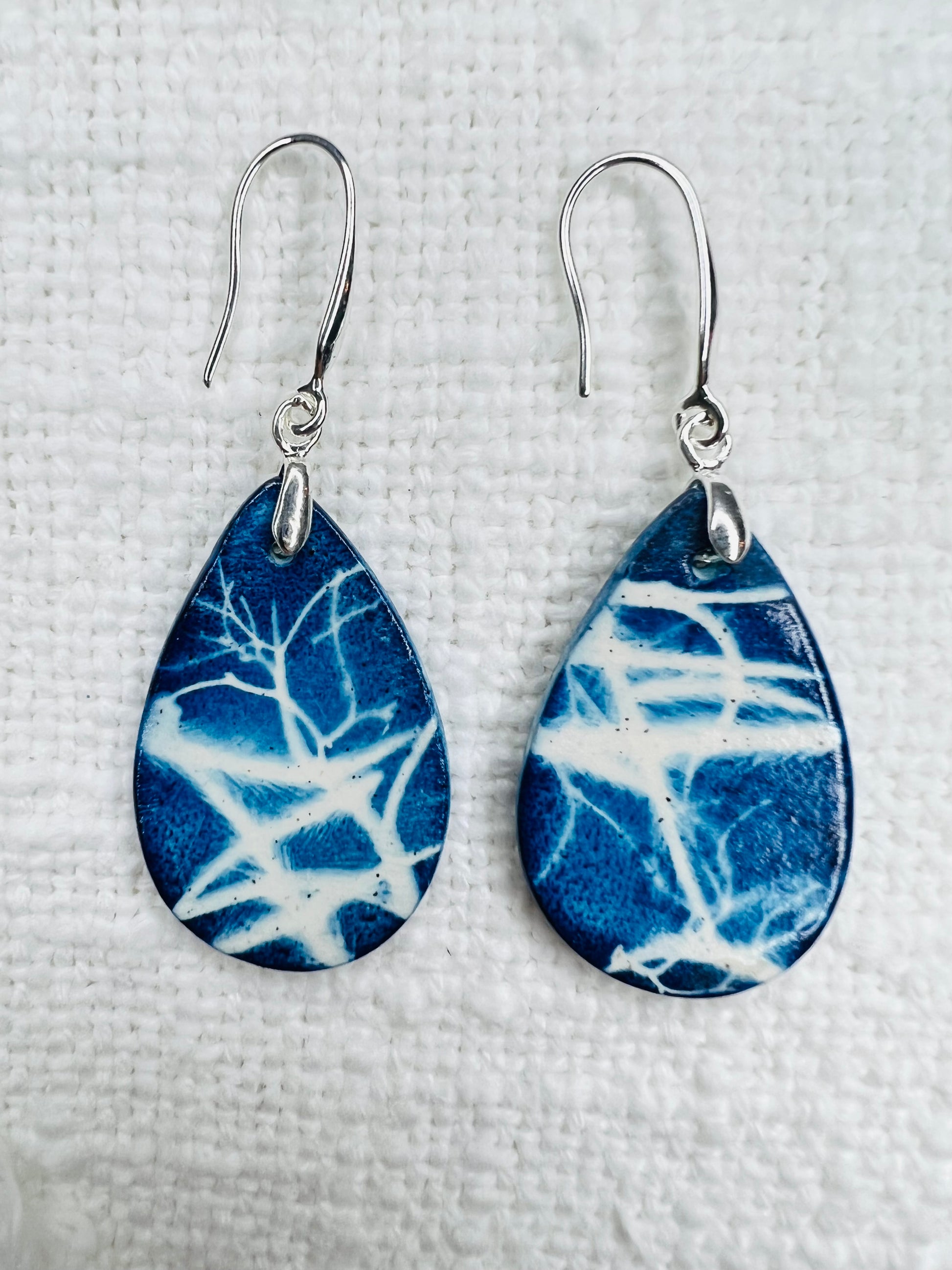A 925 Sterling silver wire hook is attached to the final products to compliment the beautiful blue tones in each unique pair.