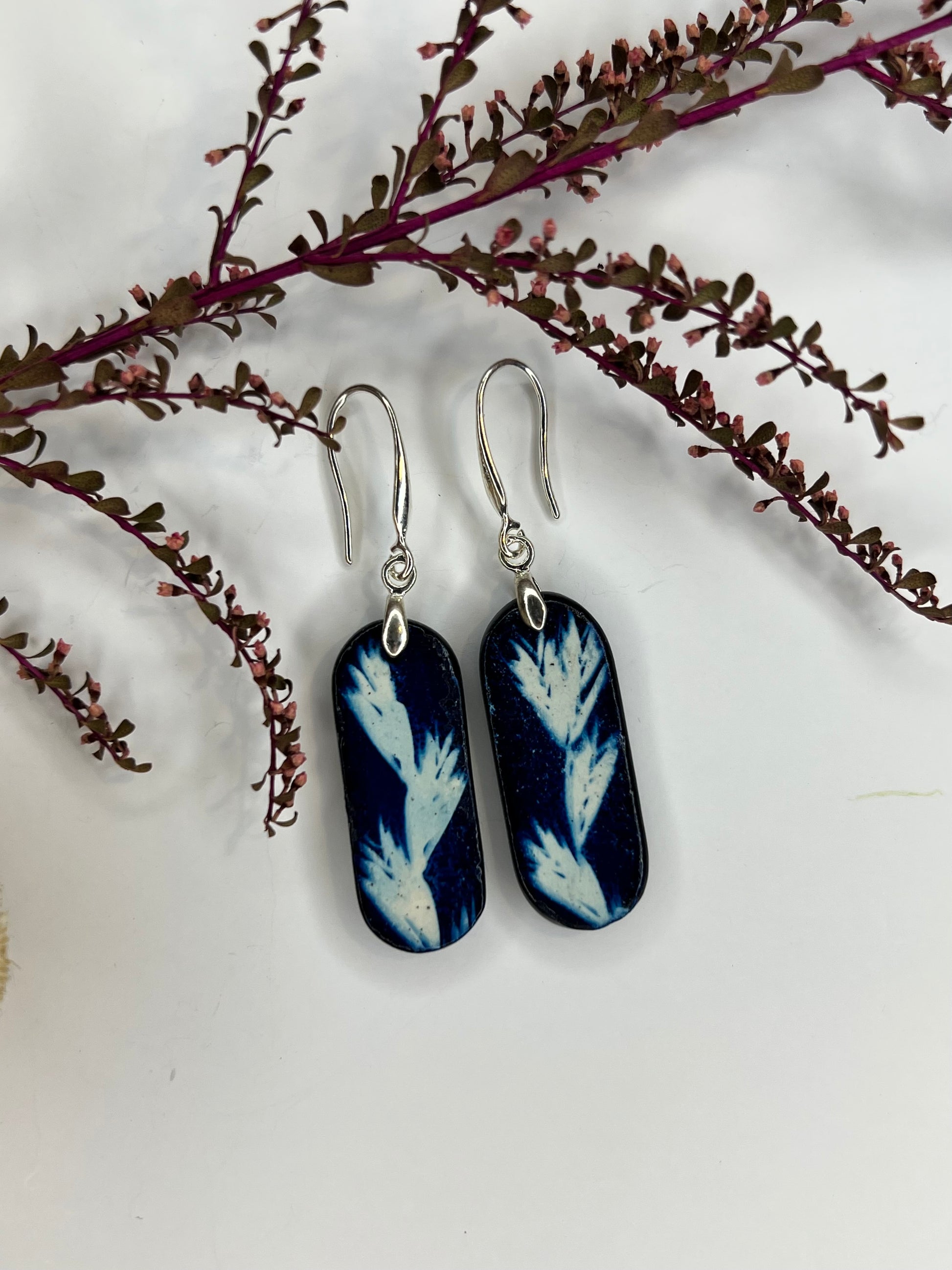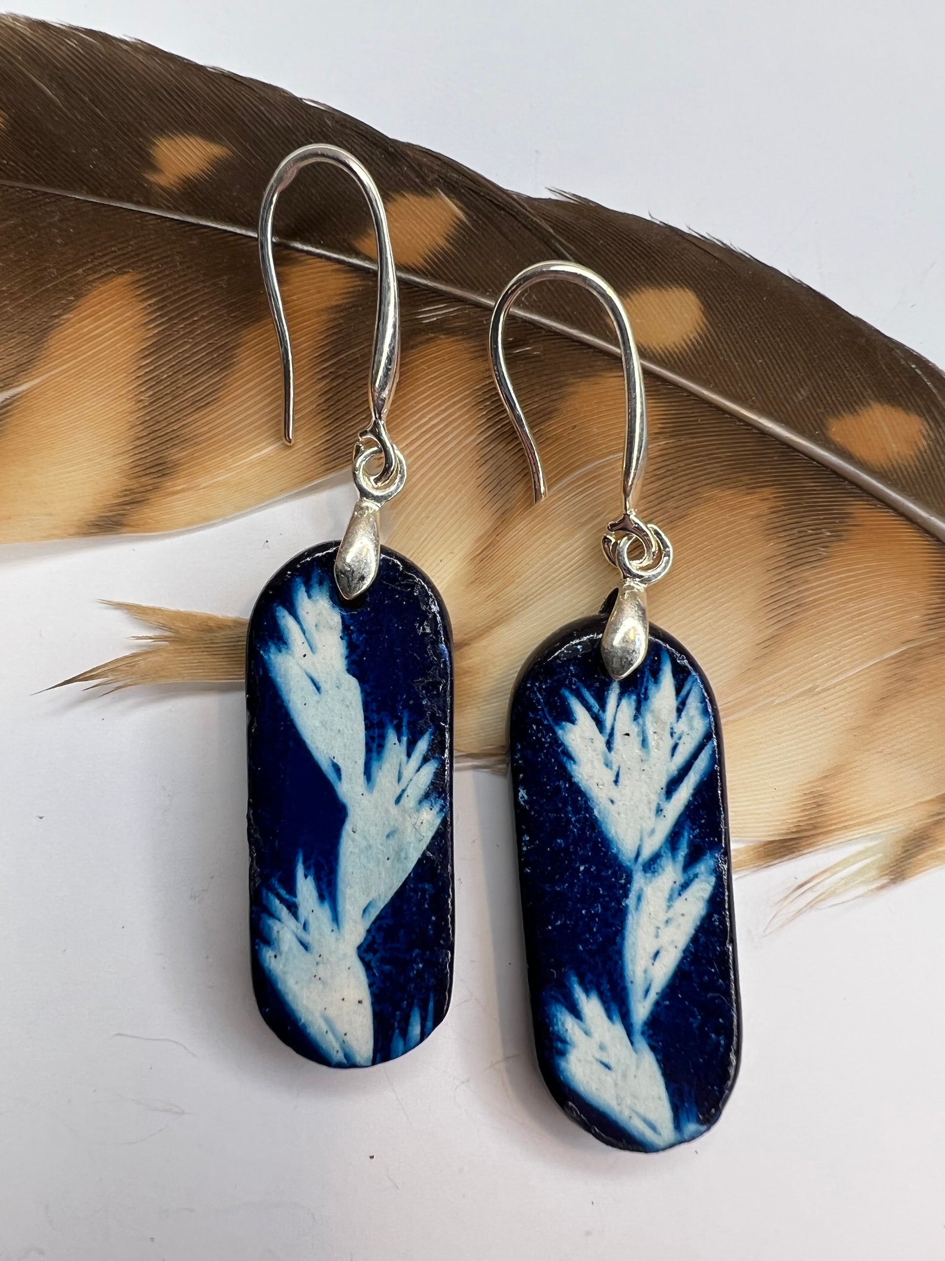 A 925 Sterling silver wire hook is attached to the final products to compliment the beautiful blue tones in each unique pair.