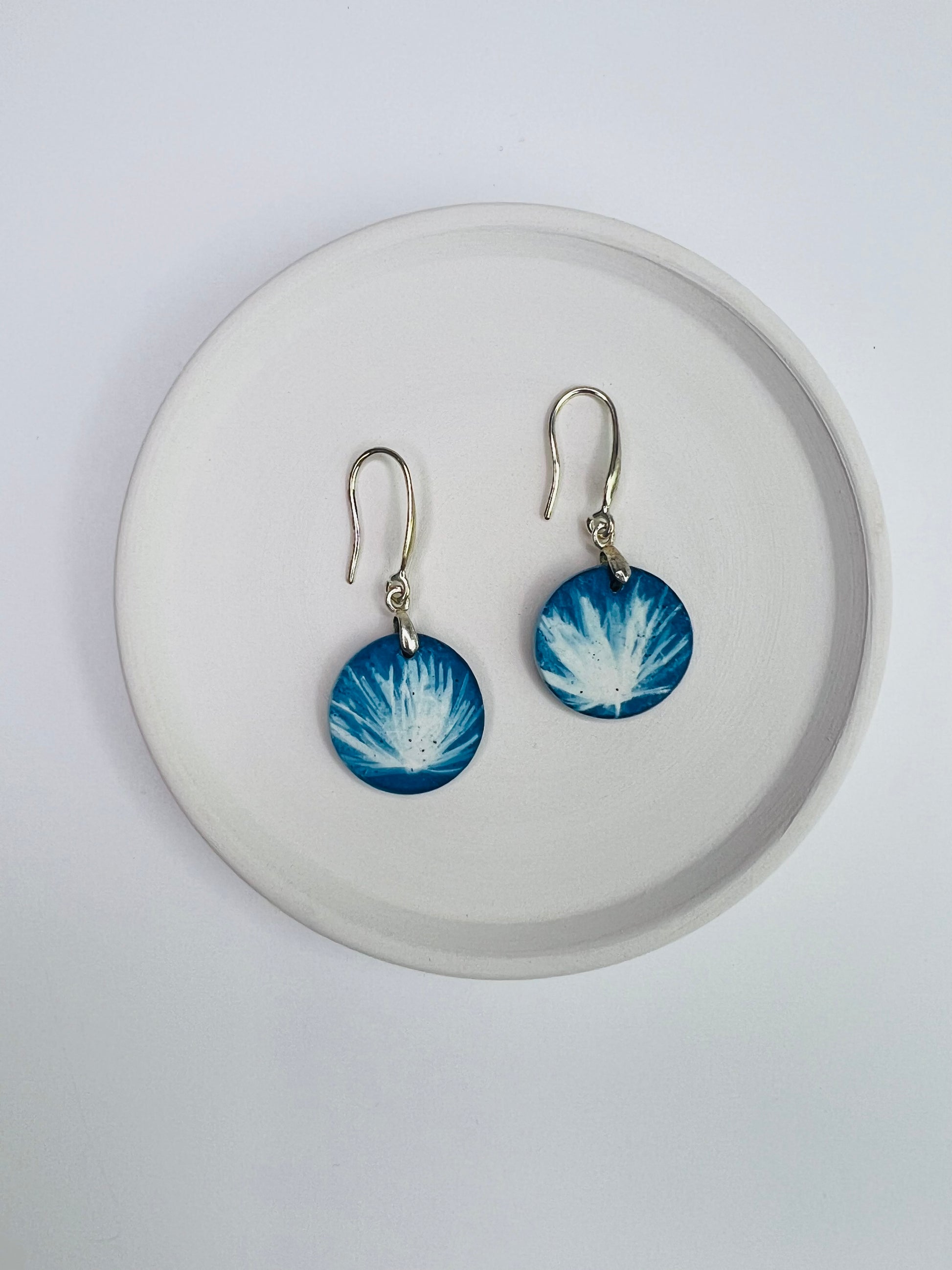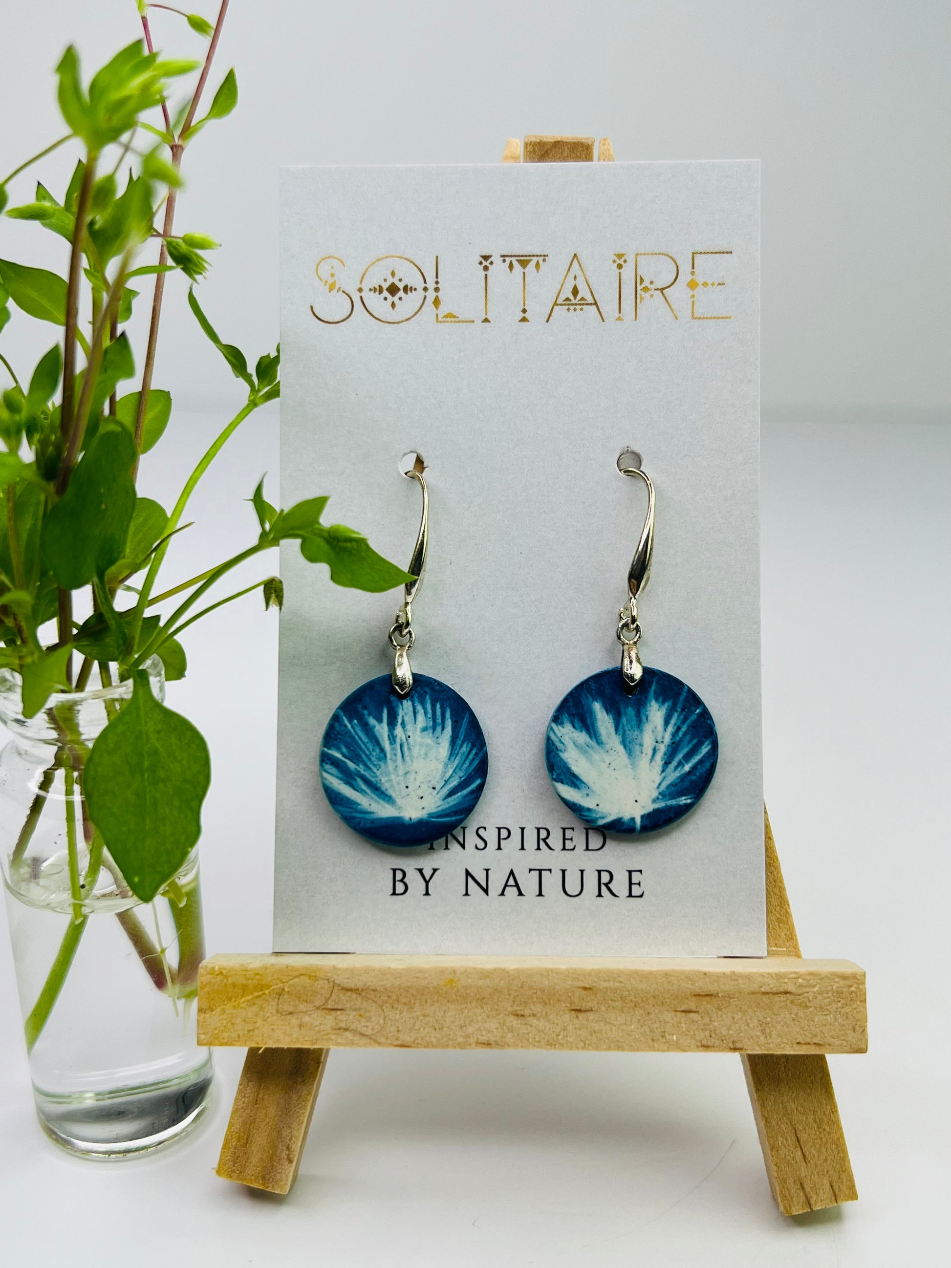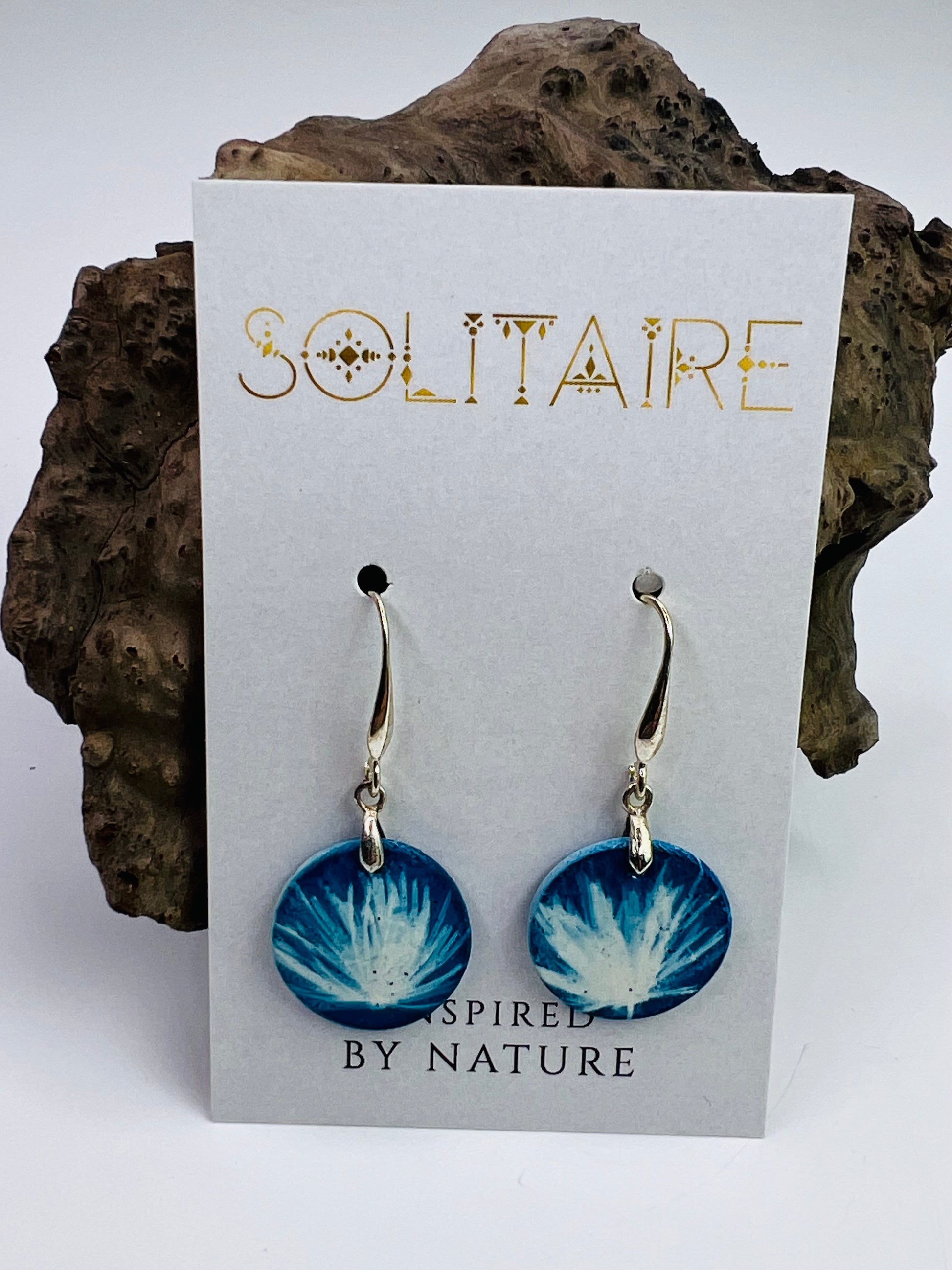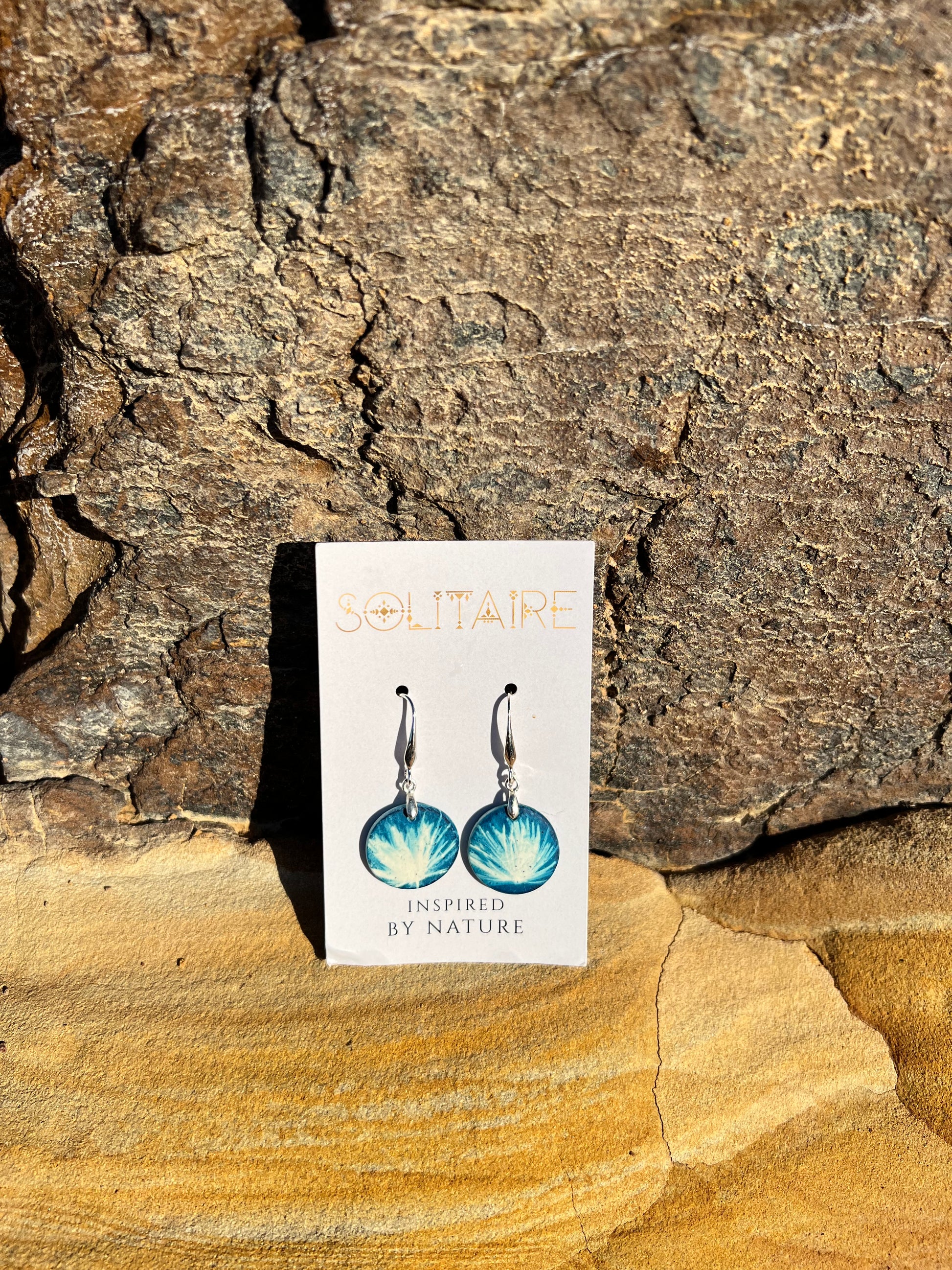 A 925 Sterling silver wire hook is attached to the final products to compliment the beautiful blue tones in each unique pair.